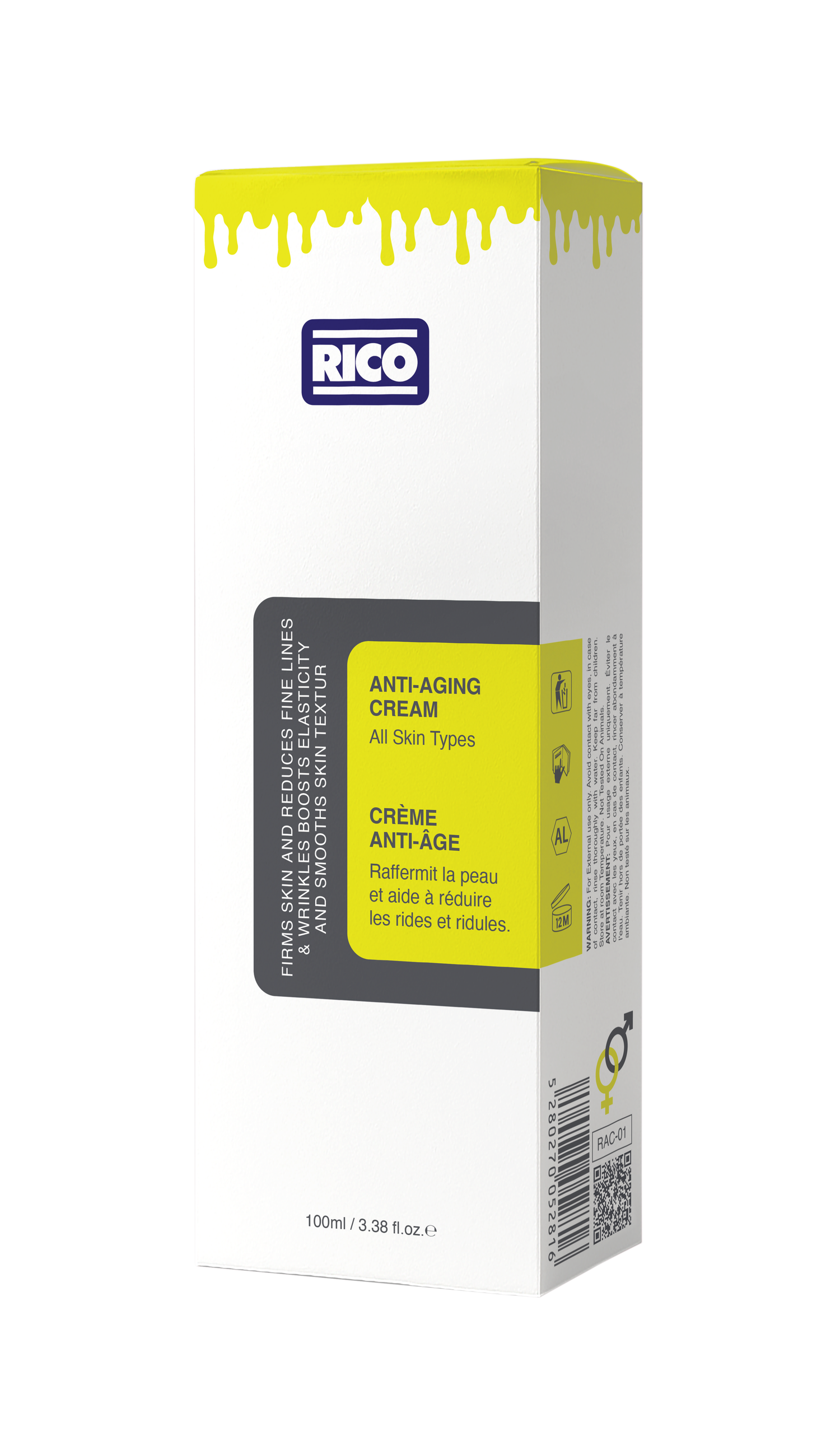 Rico Anti-Aging Cream 100ml is a deeply nourishing formula specially designed to reduce visible signs of aging and restore skin vitality. Packed with powerful antioxidants, peptides, and skin-repairing ingredients, it helps smooth fine lines, improve skin elasticity, and deliver lasting hydration.