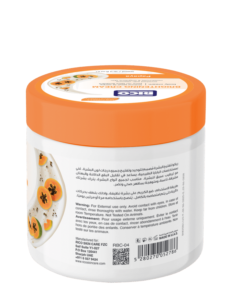Rico Brightening Cream 500ml is a large-size skincare essential designed to give your skin long-lasting hydration and a healthy, glowing look. Its brightening formula is enriched with natural actives and vitamins to help reduce pigmentation and promote a more even skin tone. Use it daily to maintain soft, radiant, and visibly brighter skin all over the body.