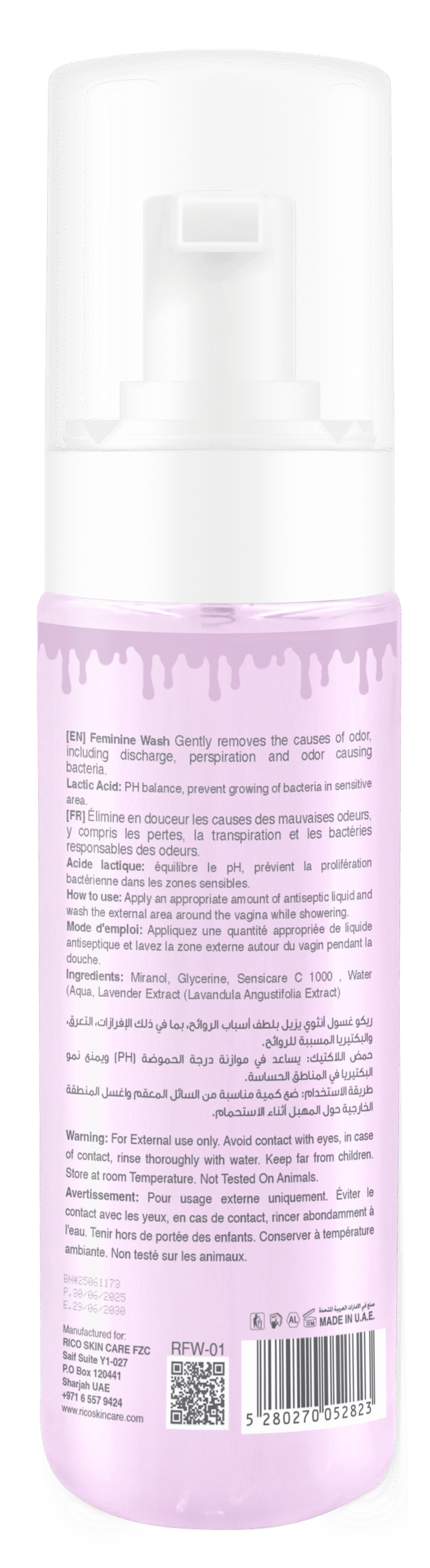Rico Feminine Wash 200ml is a mild, soap-free formula specially designed for the delicate skin of the intimate area. Enriched with natural extracts and formulated with a balanced pH, it helps cleanse gently while maintaining your skin?s natural moisture and flora. Perfect for daily use, this feminine wash helps prevent irritation, odor, and discomfort, leaving you feeling fresh and confident all day. Dermatologically tested and suitable for all skin types.